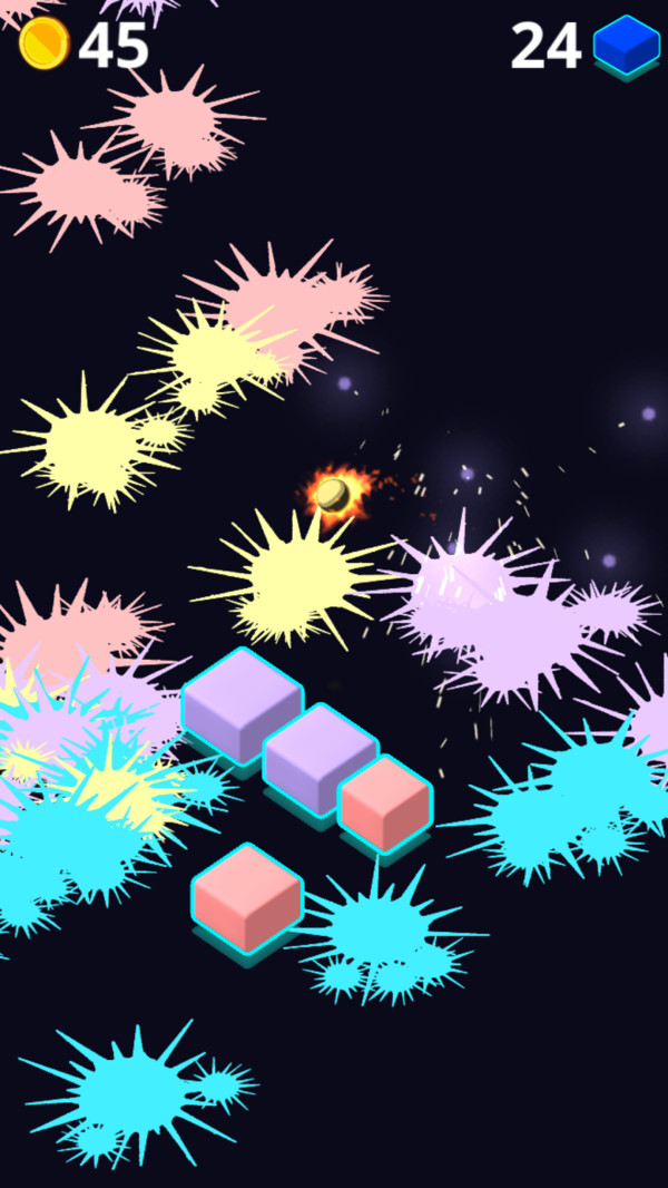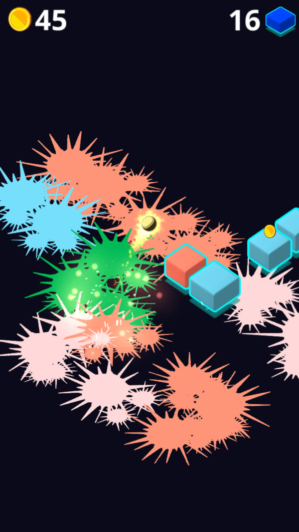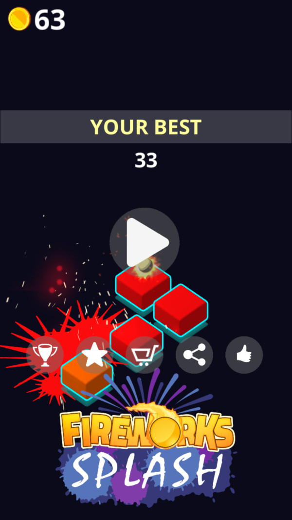烟花飞溅是一款有趣的休闲益智类手游,游戏中玩家操纵烟花球并让其跟着节奏不停交替落在不同颜色的盒子之上,让其溅起五彩的烟花,无止境的追求更高的分数,来看看你的极限到底在哪!
