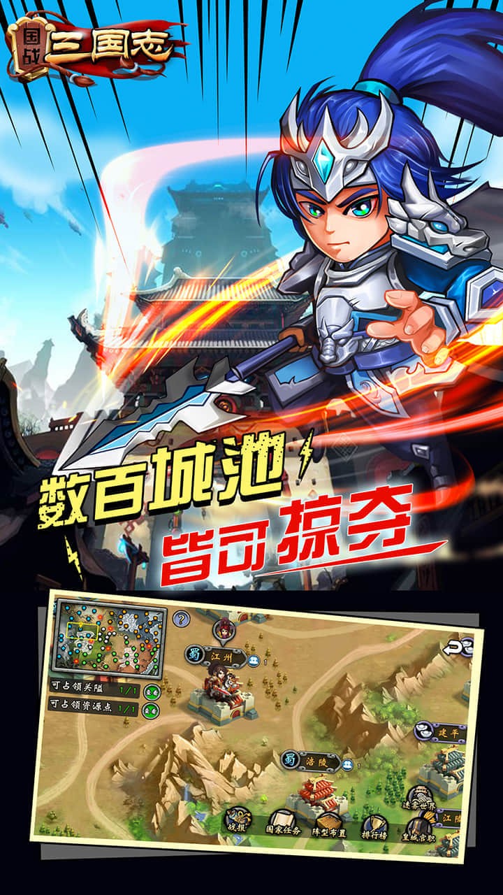 国战三国志是一款战斗策略手游,游戏中玩家将率领自己的部队迎战八方敌,在这三国乱世中快速的成长,壮大自己的军团,与不同的对手战斗,看三国争霸谁主沉浮。