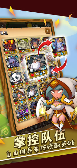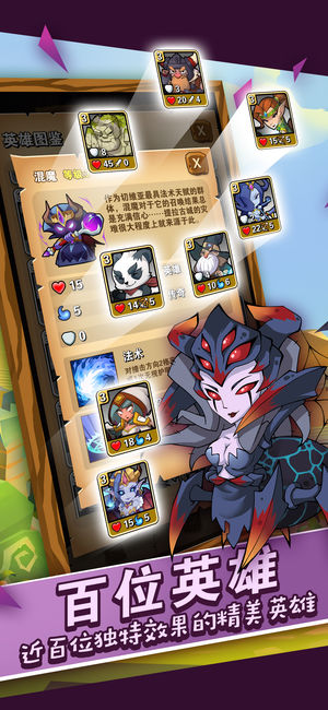 -- 近100位独具特色技能的英雄自由组合队伍战斗。
