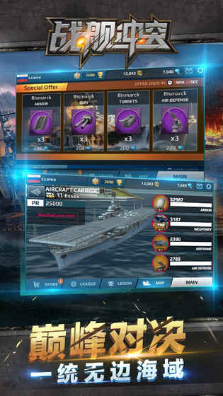 2、主炮、辅炮、鱼雷、战机、机枪等不同攻击手段,让您如虎添翼;