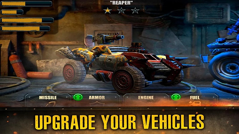 2、在游戏中玩家将驾驶全副武装的战车在末世荒漠中驰骋。