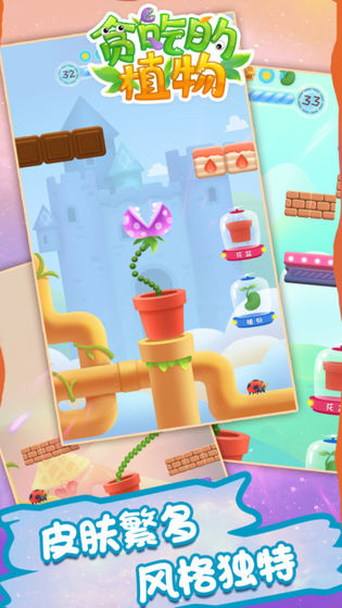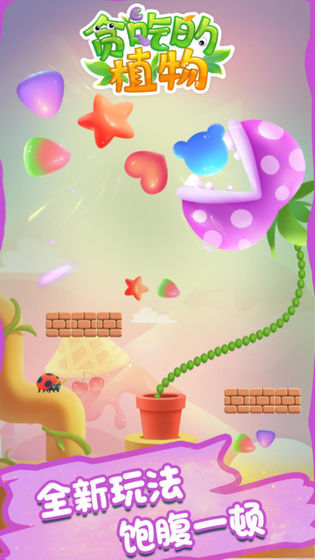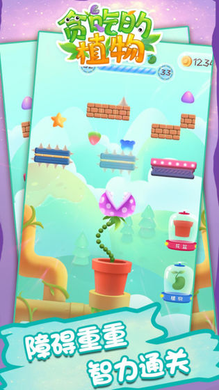 贪吃的植物以食肉植物盆栽为游戏背景,你知道有点植物不仅能捕食昆虫还能吃肉,没错就是这么一盆食人花,开始还很弱小只能吃虫子之类的,随着不断的长大开始向上找东西吃!