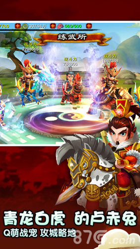 2、《萌将冲冲冲》为玩家们精心设计了武圣、军师、箭神三种不同特色的游戏职业,玩家们可以选取一个将其打造成勇猛向前冲的萌将