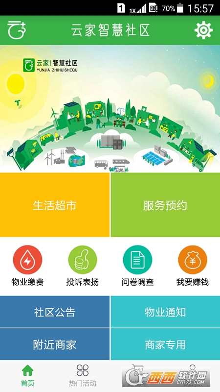 增加团购功能、优化物业缴费模式、物业交费记录查询系统、优化优惠券使用模式,优化用户体验,整合了小区的服务与周边消费,打开客户端,即可了解小区物业通知,获取物业服务,还能在周边商家打折购物,极大的方便了社区住户的日常生活。