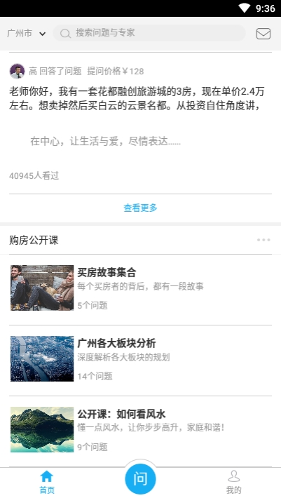 买房提问:用户可以针对专家答主一对一提问,或发布悬赏问答,等待专家抢答