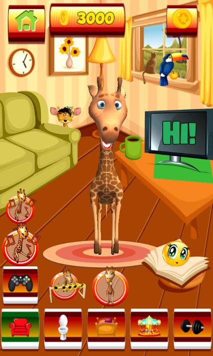 说话的长颈鹿是款有趣的休闲益智类游戏,这只可爱的长颈鹿将成为玩家最喜欢的虚拟宠物,让它拥有自己的卧室,可以睡觉和休息,可以与他交谈,他会仔细听你说的话,他还会重复你的话,会看到长颈鹿跳舞,还可以为他挠痒痒或打一巴掌,需要收集硬币,以便可以解锁其他房间,快来游戏爱好者下载看看吧。