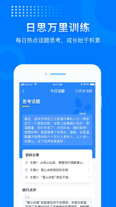 热点话题思考、资料分享、砺行点评、讲师推荐,让用户每天参与砺行的训练模式,实现思维成长于无形。