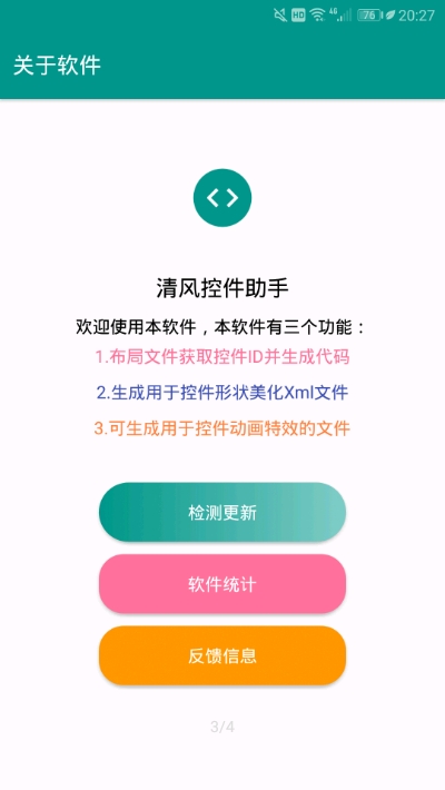 清风控件助手是一款帮助编程人员直接的在手机生成各种代码的工具,它可以生成findViewById的代码、XML的控件美化代码以及Set的动画代码,让控件的开发更为的轻松,节省在软件开发过程当中的时间,接下来游戏爱好者小编就给大家带来这款软件的具体介绍,感兴趣的小伙伴们速来游戏爱好者看看吧~~