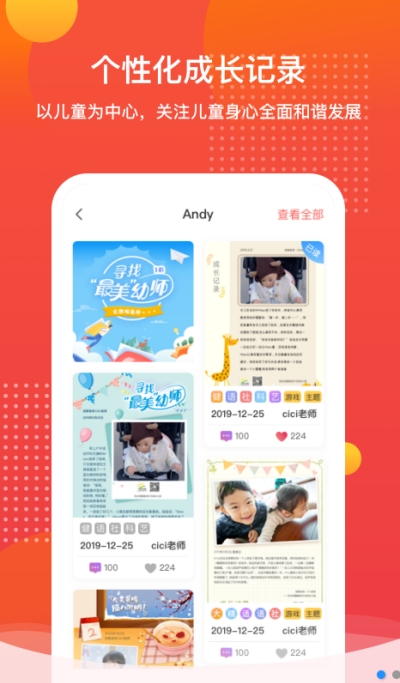 4.成长纪念册:每学期汇总孩子在园表现,依据《3-6岁儿童学习与发展指南》,智能分析孩子的能力发展状况,并给出个性化指导建议。通过自动生成的精美纪念册,让孩子的成长显性化、园所的教学效果显性化,教师的专业能力显性化。