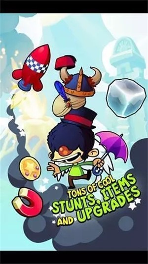 游戏中玩家要控制一个长得像小丑的人偶,不断的跳上更高的楼上。就像是跑酷一样,玩得越久得分才能越高。不断的在楼里面迟到更多的金币,并疯狂的跳跃,获得更多的积分。