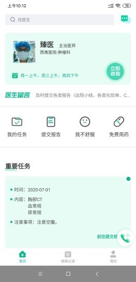 臻医在线APP为医护人员提供简单好用的患者随访系统和病程记录系统,同时也为医患双方提供在线问答的功能,患者可利用app即时的向专业医护人员咨询,获得药物、不良反应、随访报告、营养等相关医学建议。