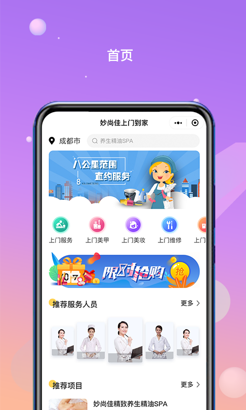 妙尚佳是国内自创B2C,直约上门到家服务品牌。提供无中介上门美容、上门美甲、上门化妆、上门按摩、上门维修等,省去了中间环节更专业、更高效、更安全的上门生活服务综合服务应用。