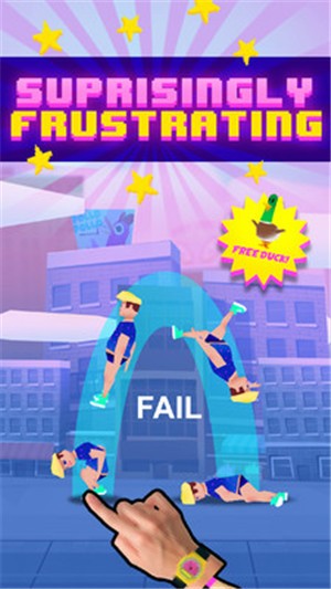 玩家可以通过三个简单的按钮来控制一个Ragdoll的角色。游戏的目标是在不同的投掷和技巧的同时,通过挑战性的关卡。