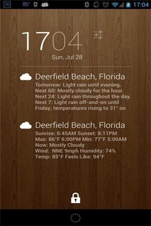 软件可以自选预报系统,随时查看两个预报系统的信息,作为出行规划的参考能够更有保障。这款软件还提供天气预报锁屏插件,不用打开手机就能快速看到当日的天气信息,并且还能与解锁密码按键区完美契合,十分个性。