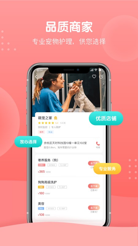 服务内容经过第三方审核,充分保障您和爱宠的合法权益,为用户的宠物提供全面的服务。