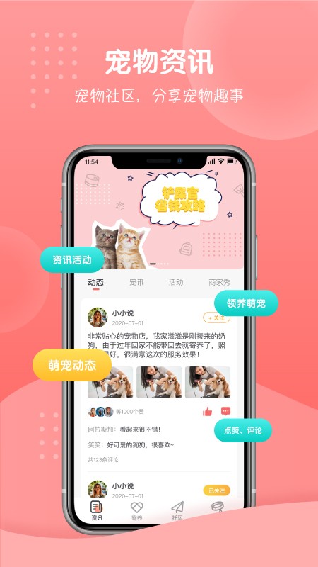 3、关爱宠物生活及成长,为宠物提供更好的生活,分享更多趣味的养宠话题。