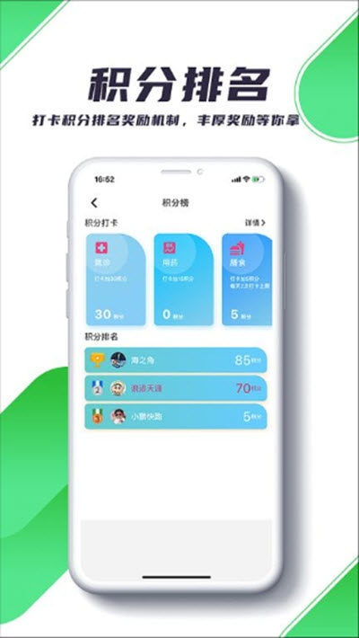打卡类型有就诊打卡,用药打卡,膳食打卡,运动打卡,结伴打卡,集训打卡,学员根据健康管理团队制定的相应建议进行拍照打卡,审核通过后加积分,同时设有积分排名榜,结营后成绩优异的学员可获得奖励哦。