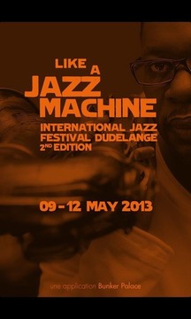 LeFestival«LikeaJazzMachine»faitrayonnerlejazzetsesambiancesàDudelange,auLuxembourgetdanslaGrandeRégion.Du9au12mai2013,lesgrandsnomsetlégendesvivantesdujazz,lesartistesreprésentatifsdesnouvellestendancesetlesdécouvertesd'icietd'ailleursvontsepartagerlascène.Retrouvezdanscetteapplicationlaprogrammationdufestival,lesinformationsutilesainsiquel’actualitéenphotos,vidéosetcommentaires.