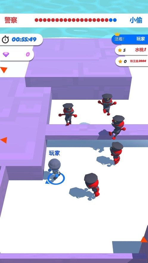 扮演负责警察或小偷的角色,要将小偷全部都给抓住,或者逃脱警察的追捕来获得奖励;