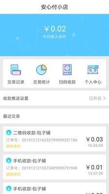 安心付小店app支持退款功能,实现及时快速手动退款。
