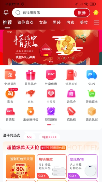 2、可在应用中搜索商品优惠券,以便能及时找到并优惠购物;