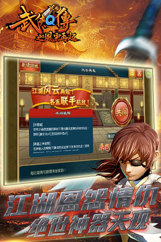 《武侠Q传》是一款拥有超精美3D画面的武侠RPG兼策略类游戏。游戏中你将扮演一位少年英雄,阅历不深却肩负一派掌门之重任,奉先师遗命下山,带领金庸、古龙、梁羽生经典武侠小说中众多耳熟能详的英雄豪杰一同闯荡江湖,寻访已绝迹江湖,冷酷美艳且武功奇高的魔教教主。