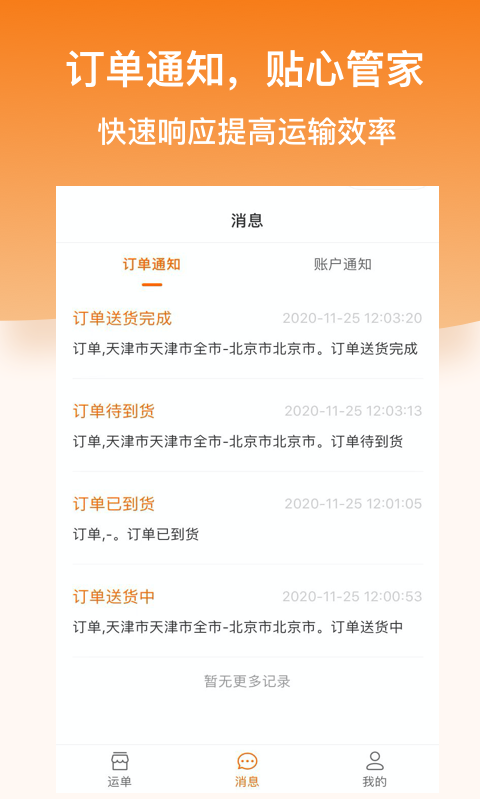 4、订单通知,贴心管家,快速响应提高运输效率;