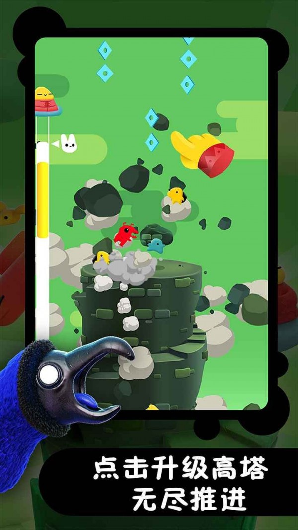 2、每次闯关后,都能获得新的能量,将其用于建造高塔,快速点击屏幕,高塔就能飞速攀升;