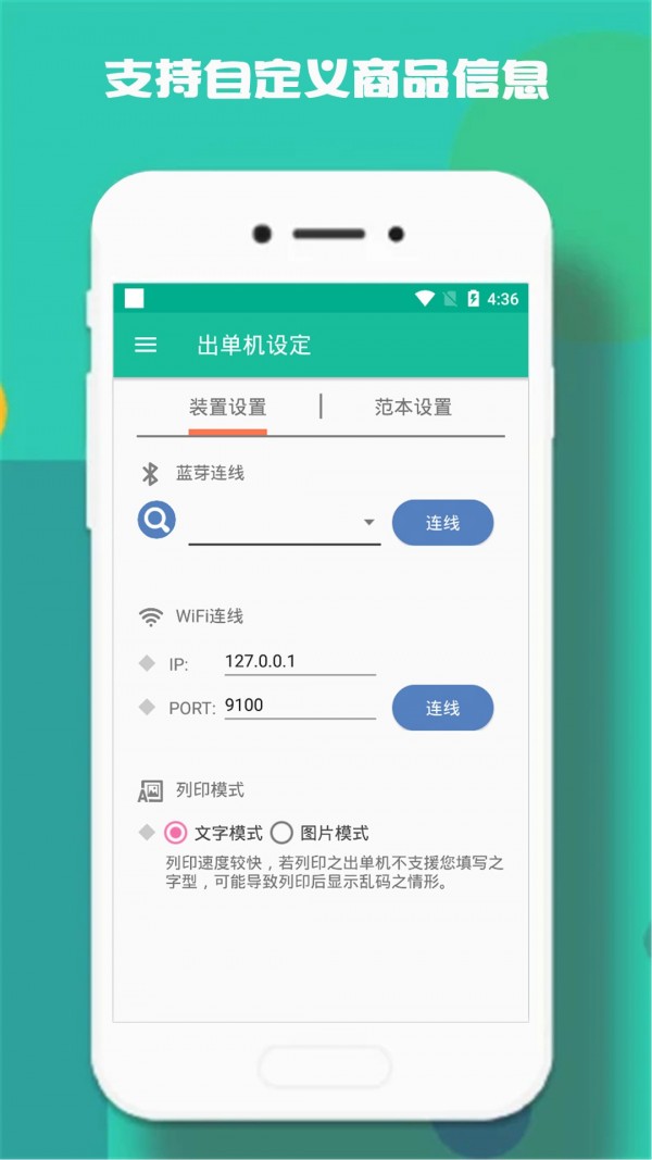 1、打印机连接,可通过蓝牙或者wifi来直接与打印机进行连接方便打印订单。