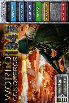 《世界征服者1945 World Conqueror 1945》是一款以二战为题材的战略游戏。在游戏中依靠军事单位争夺陆地,城市,海洋等地区,争夺资源,发展经济和军事,攻占对方的首都并且消灭对手。在游戏中必须合理的操作和分配士兵,坦克,大炮这三个最基本军事单位进行游戏。