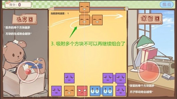 3、游戏中你可以看到这些治愈的方块,他们还能生成不同的表情,让你的闯关有着更多的乐趣。