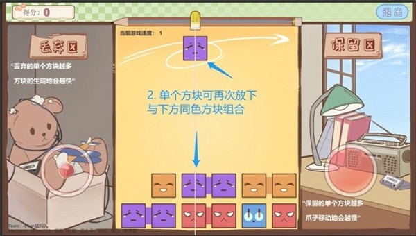 2、这里的规则是非常简单的,你要去消除相同颜色的方块,每一次的挑战中还会有一些特殊的任务;