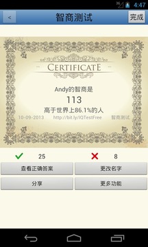 3. 提供两套测试题:经典测试和门萨。(Mensa高智商俱乐部)测试