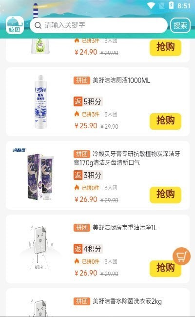 喜欢网购的朋友们千万不要错过这款鲸团app。通过这款软件可以轻松购买到自己需要的商品,质量有保障且价格优惠。每天都会发放大面额的优惠券,还可以参与各种优惠活动,能够为用户们节省一大笔钱。下单后会有专门的配送人员送货上门,让用户们购物无忧。对这款软件感兴趣的朋友们快来下载试一试吧!