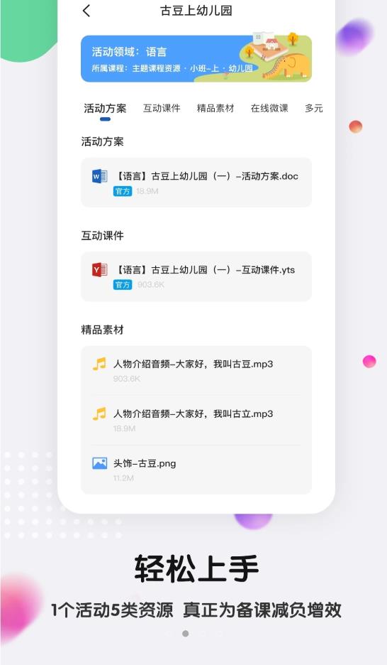 2.找素材更便利,还可以提升一切幼师的讲授程度在手机上,让本身进修更轻松,是一款可以提升本身的进修才能的软件。