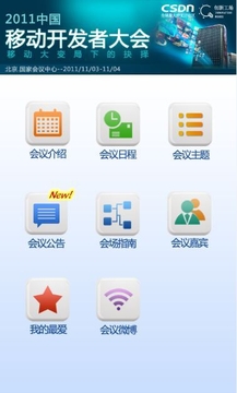 CMDC2011 应用是2011移动开发者大会参会高效助手。提供会议的日程、专题、嘉宾、交通等服务,同时提供会场的实时微博、会场公告等信息,用户可以通过收藏等操作来规划自己的会议议程和嘉宾,提高用户的会议效率和会议的互动。2011中国移动开发者大会(CMDC,2011 China Mobile Developer Conference)由CSDN、创新工场主办,派代网、腾讯应用中心联合主办,将于2011年11月3~ 4日在北京国家会议中心召开。此次活动预计将有千名参会者,云集国内外知名移动应用作者。时 间:2011年11月3-4日地 点:北京 · 国家会议中心