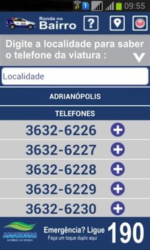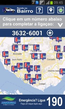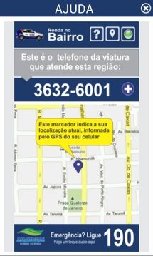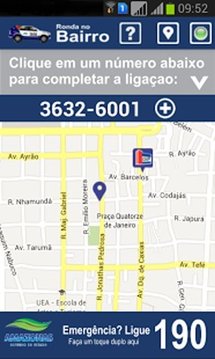O aplicativo Ronda no Bairro tem o objetivo de aproximar o cidadão da polícia, permitindo a localização do telefone direto da viatura que atende a sua localidade. A localização pode ser feita pelo GPS do aparelho celular, através da movimentação do mapa, ou ainda, no caso de não haver comunicação por internet ou localização por GPS, através de consulta manual. O serviço é oferecido pelo Governo do Amazonas. No momento o aplicativo contempla somente a cidade de Manaus. Em breve outros municípios serão atendidos.Para exibir o mapa é necessário acesso à internet WiFi ou 3G, e GPS. Habilite o GPS e os serviços de localização no seu celular. Caso o GPS e o acesso à internet não estejam disponíveis, o aplicativo funcionará no modo "offline".Atenção! É necessário que o celular tenha no mínimo a versão 2.2 do Android.Em caso de problemas verifique os seguintes itens:- Atualize a versão do Google Play no seu celular. Caso não seja atualizado os mapas não funcionam.- Verifique se a opção "localização por rede" está ativada nas configurações do celular. Se não estiver, ative.- Ative a localização por GPS.Para maiores informações sobre localização por GPS e esclarecimentos de dúvidas, visite esse link:http://www.rondanobairro.am.gov.br/mobileRonda no Bairro - Disk Ronda - Disque RondaSegurança mais perto de vocêGoverno do AmazonasCriando Oportunidades
