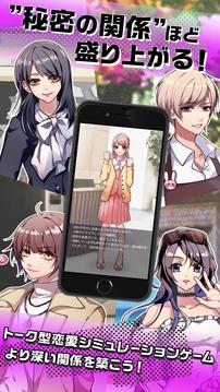 “秘密的关系...开始了” 虽然知道这种禁忌的恋爱不能实现…. 但是,日常生活中偶尔发生一些不能公开的秘密关系…..感觉应该还不错吧! 恋爱对象传来短讯也…..扑通扑通!把她/他们一举拿下! 游戏方法 1. 先输入你的名字,和选择角色性别。 2. 当你收到各个异性传来的短讯后尽快回复吧! 3. 好感度上升,你们2人的关系就更紧密…… 推荐给 -对禁忌之恋有兴趣的人 -觉得普通恋爱游戏不能满足的人 -对“禁断”没有抵抗力的人 -对现实中的男/女朋友不满的人 -喜欢使小聪明的人 -喜欢妄想的人