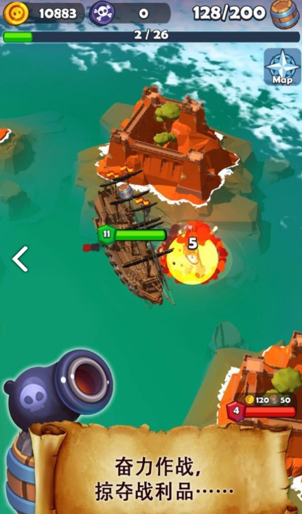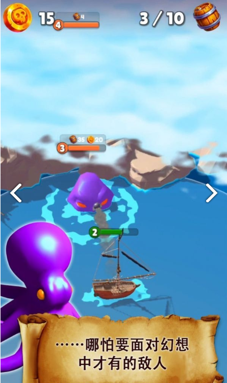 2、你将与遇到各种挑战,指挥所有船只进行战斗,去消灭敌人获取战利品;