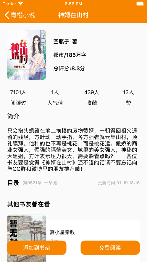 免费小说阅读软件青橙小说推荐给大家,喜欢看网文的小伙伴绝对不能错过,这里有丰富的小说资源,还有详细的分类,无论你喜欢看什么小说都可以找到。每一本小说都是实时更新,阅读过后你还可以留下自己的评论,和作者交流互动。阅读界面也可以自由设置,快来下载吧!