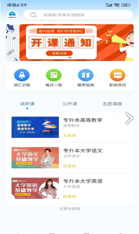 聚思云在线是一款优质的学习教育软件,软件里面有丰富的学习知识,课程内容都是精选的,用户随时可以在线进行学习,学习的效率都非常的不错,提升用户的学习成绩都很有效,学习知识都可以查看,让用户可以专心的复习,功能齐全,服务周全,学习都很轻松。