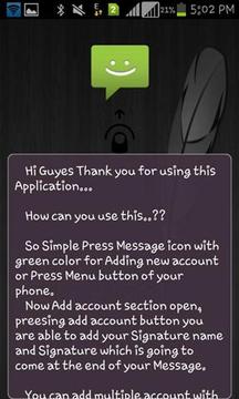 在Android中默认的邮件编辑器用于添加签名。此应用程序是为那些喜欢加入签名的人有帮助。此应用程序还选择了许多签名被你提供了一个方便。虽然小,但非常有用的应用程式。