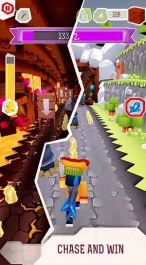 追逐手工艺是一款经典的酷跑游戏,点击开始就能开启你的冒险之旅,在酷跑的过程中会遇到超多的危险都要及时的躲避过去,遇到金币要及时的收集,进行是你唯一可以加分的,可以穿越很多的地方,使用道具可以加快跑一段路,操作很简单,看玩家的反应能力。