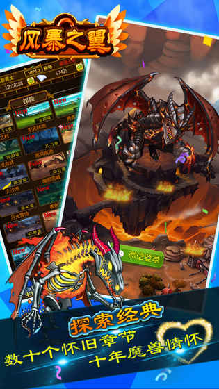 《风暴之翼》是一款经典放置类角色扮演冒险游戏。游戏中玩家扮演从村庄中走出的一位战士。火焰军团降临,家园被毁,主角是否能够夺得真神遗留的神器,打败火焰军团,重建家园,世界的命运将如何发展……