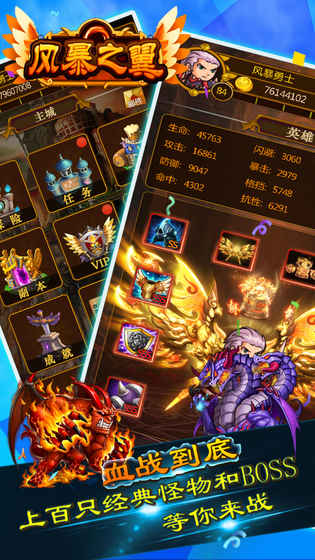 风暴之翼电脑版是一款经典放置角色扮演类冒险游戏,游戏玩法操作简单,破除了传统RPG游戏繁琐的剧情任务,在风暴之翼电脑版中,玩家可以享受刷BOSS的爽快感,还有丰富的成就和称号系统等待玩家收集。