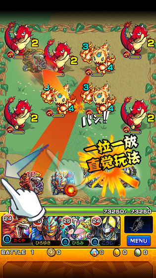 用手指拖动怪物瞄准敌人,松开手指就能把怪物弹射出去,同时完成移动和攻击,避免了繁琐的操作。击中敌人会造成伤害,撞到友方单位则会触发效友情技能!