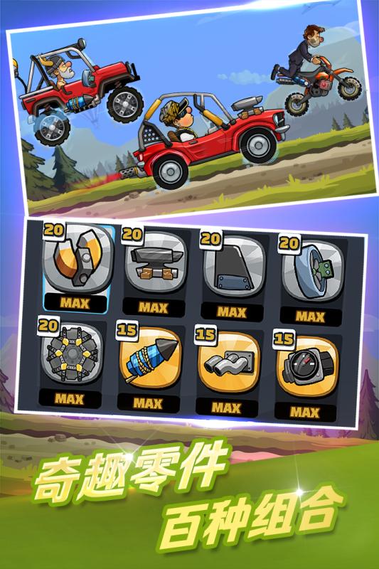 史上最强登山赛车重磅归来,登顶美国IOS 全类APP下载榜Top.1 老司机比尔归来,全新排行榜、重装坦克、高智能方程式赛车重磅上线,再掀夏季杯赛热潮。全新关卡邀你任性翻滚,赛车之余,玩家还可登上神秘矿山、深冬极地等全新赛道尽情玩耍。游戏在保留原有玩法的同时,带来任性好礼及丰富的冒险任务,比尔大叔即将面临最新挑战。赶快加入全球5亿老司机推荐的2D休闲赛车手游《登山赛车2》,任性开跑。