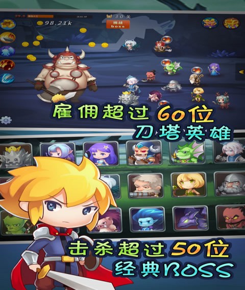 单机刀塔防御下载全程自然空旷的游戏场景,伴随着劲爆的音乐,吸引很多玩家来招募许多萌化的小英雄们的塔防游戏,给你震撼的群殴体验。游戏中玩家可以根据自己的意愿自由的选择各怀绝技的英雄们,组成一个强大的团队保护自己的安全,对敌人主动发出攻击,获得相应的奖励。玩家们还可以进行对英雄的队伍调整和升级装备喔,快来收集金币吧,还有提升佣兵的能力的任务等你来完成喔。