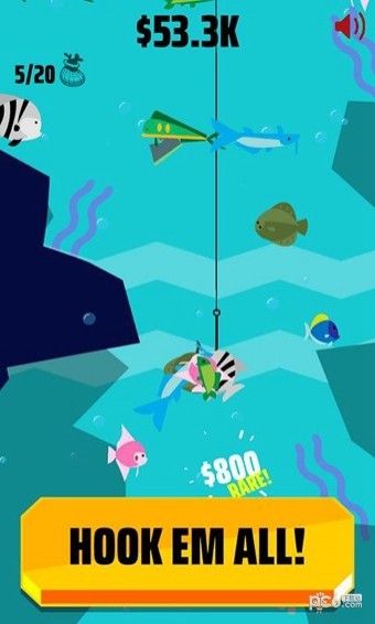 抛竿,深入海底,收线过程中尽可能抓住更多的鱼!升级你的渔具来抓住更多的鱼,潜入更深处,捕获珍奇鱼类以及发现新品种!