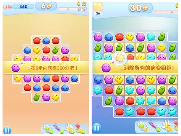 手术室里,时间就是生命!你需要用最短的时间帮助患者运送药物,消毒杀菌,消除病变组织,甚至是进行复杂的限时手术。病人的生命就掌握在你的手速里。手速够快时,还能开启高能爆屏模式,激活手术刀,创可贴,和暴走等狂热状态开启双倍,满屏爆炸消除效果,让你感受更刺激畅快的消除体验。